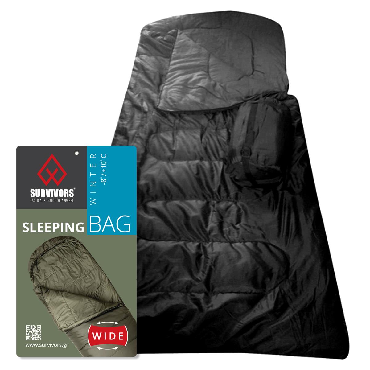 Υπνόσακος Winter φαρδύς -8/+10 °C ( 400gr ) Survivors Μαύρο
