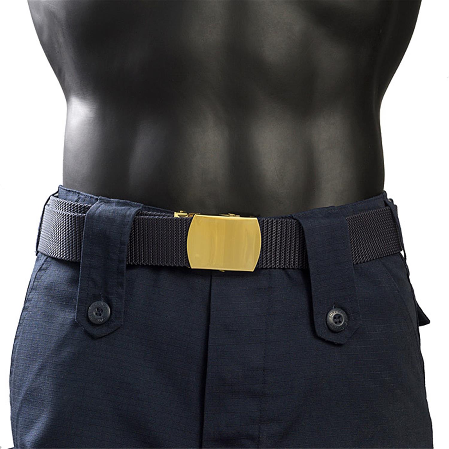 Ζώνη στενή (40αρα) Μπλε που περνάει  από τις θηλιές του στρατιωτικού παντελονιού. Με χρυσή ή ασημί πόρπη. Αυξομειώνει στο μέγεθος (μέχρι Νο 54).