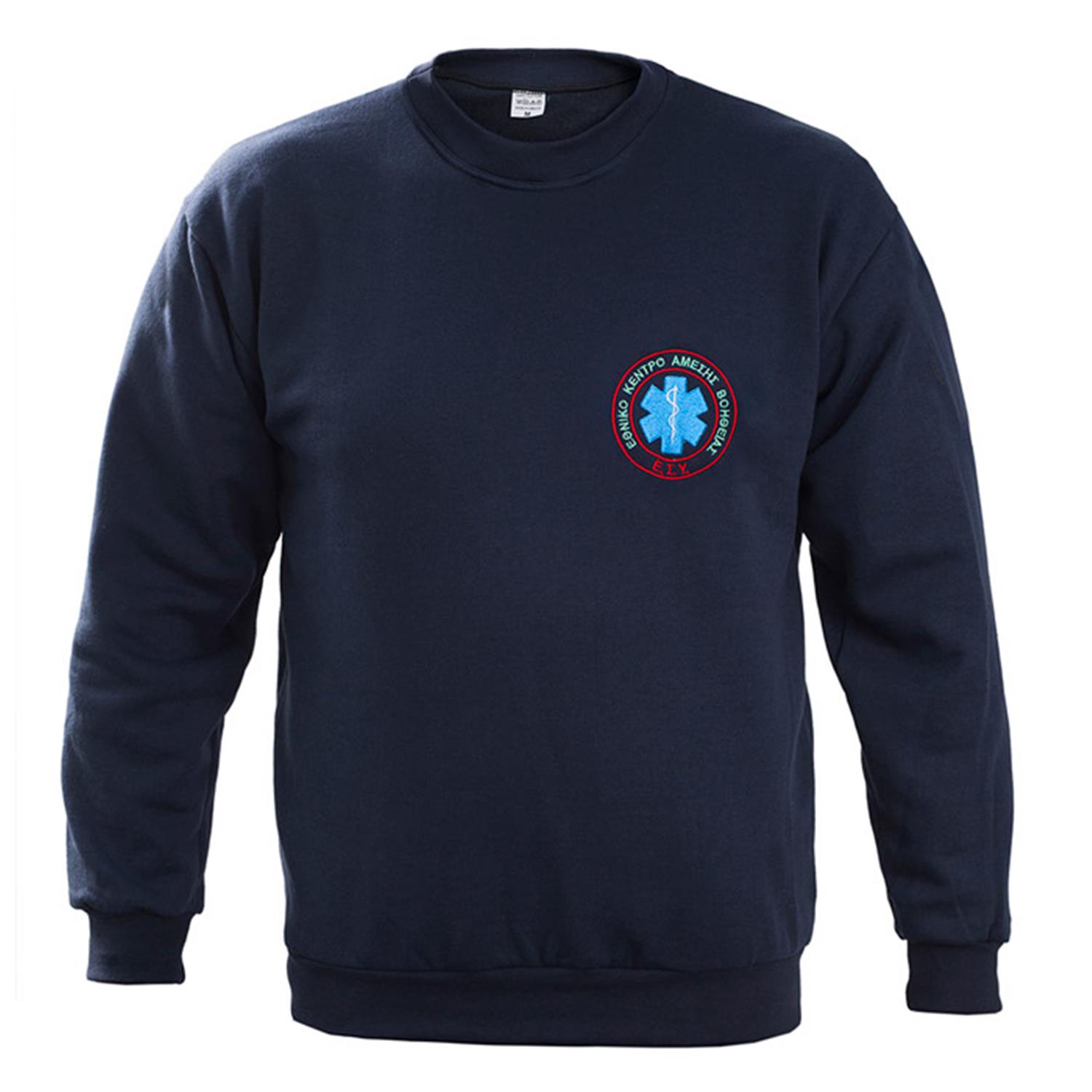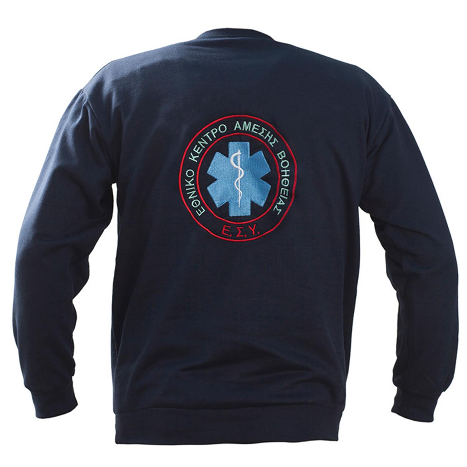 Φούτερ με λάστιχο και κέντημα ΕΚΑΒ μπρος πίσω προδιαγραφών Σωμάτων Ασφαλείας, βαμβακερό 100% Μπλε