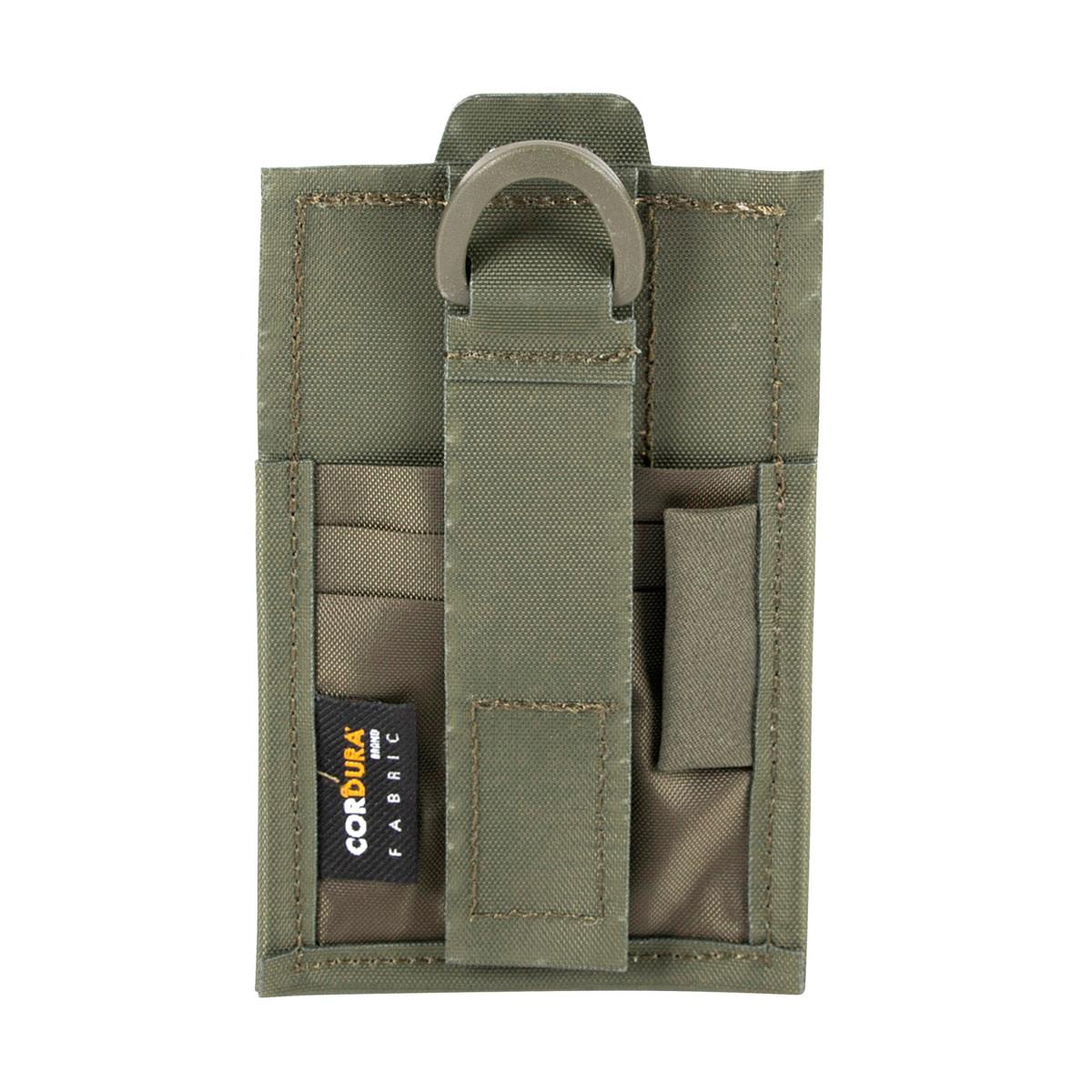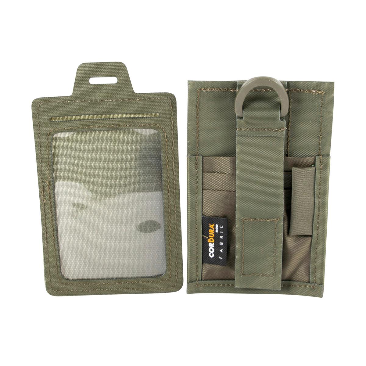 Sturdy combo shell for ID, credit cards, and pen. The ID shell is hooked on and can be removed as needed and used as a patch.