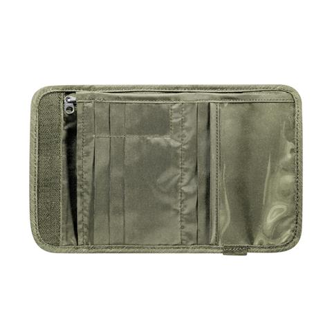Fold-out wallet with a clear compartment on the back. In addition to slots for credit cards and two zip-up compartments for large and small money, this large wallet also has a clear compartment on the back for an ID card that needs to be kept conveniently close at hand.