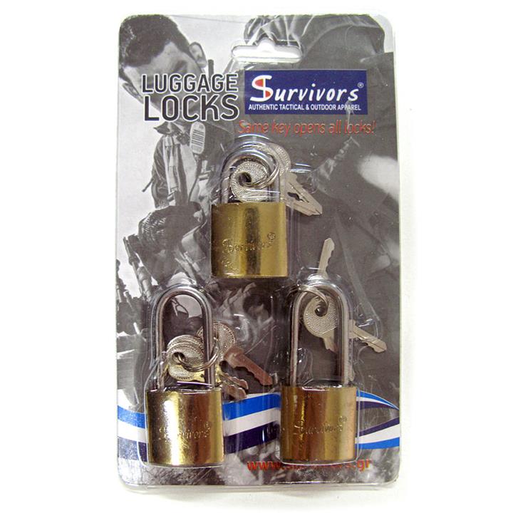 Ανοίγουν με το ίδιο κλειδί. Διατείνονται σε 3 συσκευασίες. Ιδανικά για χρήση με τα σακίδια και με τις τσάντες Survivors