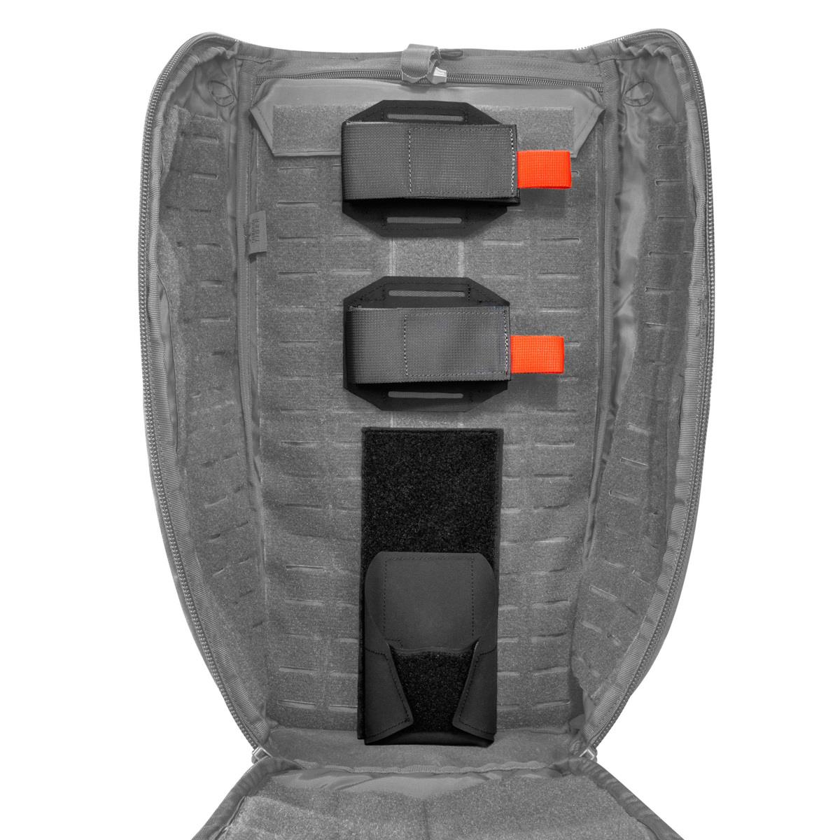 The set consists of various hook-and-loop and MOLLE fixings as well as an adjustable muzzle protection funnel made of Hypalon. It is suitable for bags and backpacks with large hook-and-loop and MOLLE hook-and-loop surfaces and can also be used on the TT Modular Front Seat Panel (item 7548).