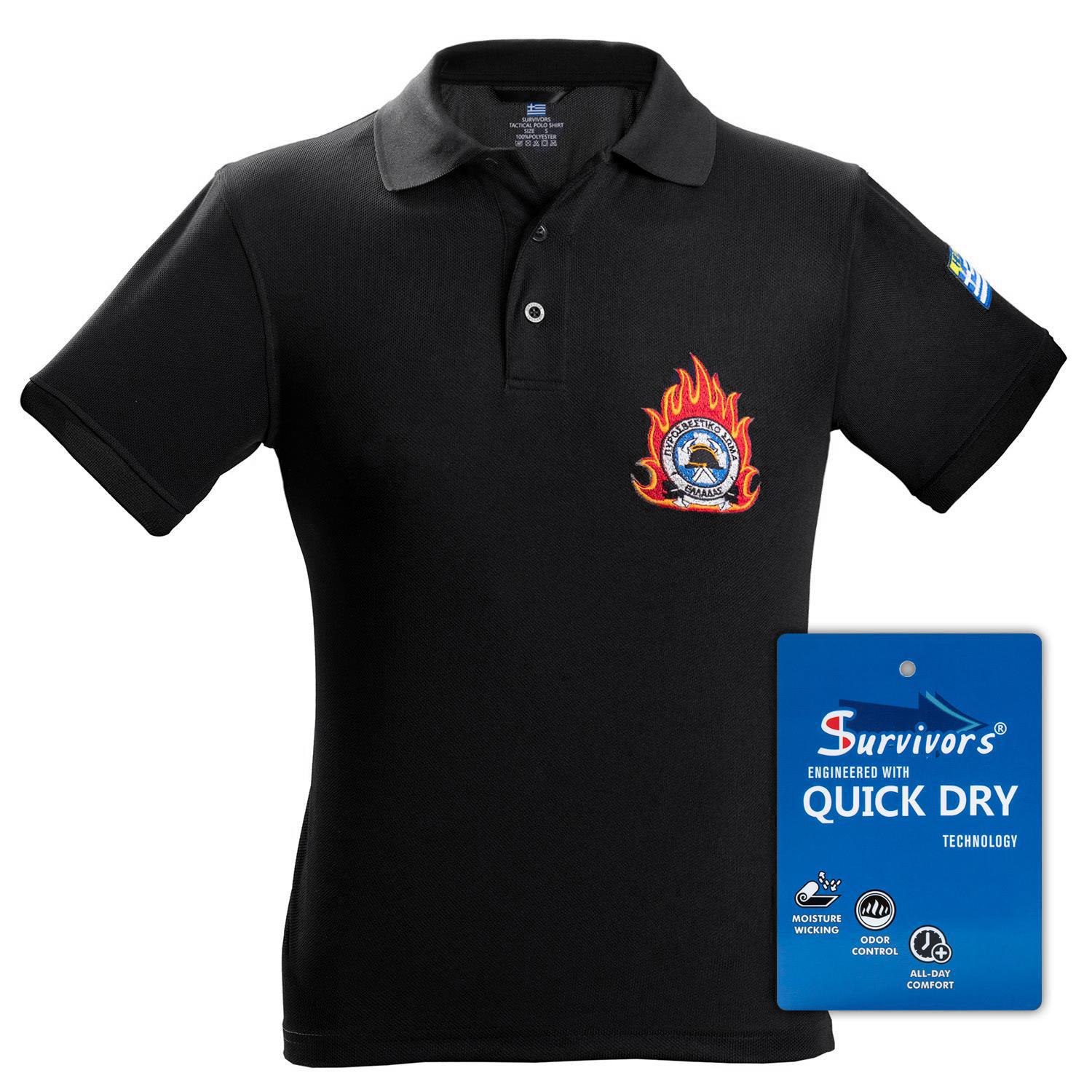 Μπλουζάκι Polo Quick Dry με κέντημα Survivors μονόχρωμο Μαύρο 3XL-4XL Πυροσβεστικής