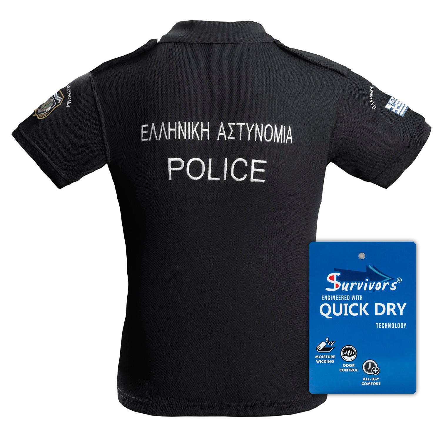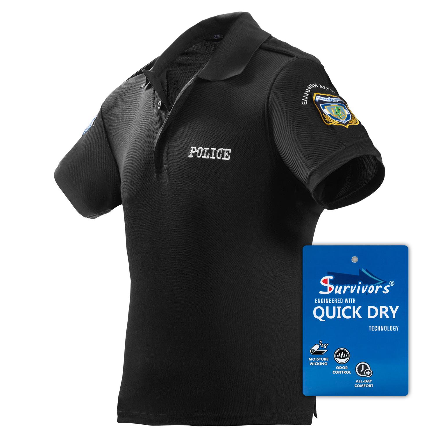 Μπλουζάκι Polo Quick Dry με κέντημα Survivors μονόχρωμο Αστυνομίας (Μαύρο)