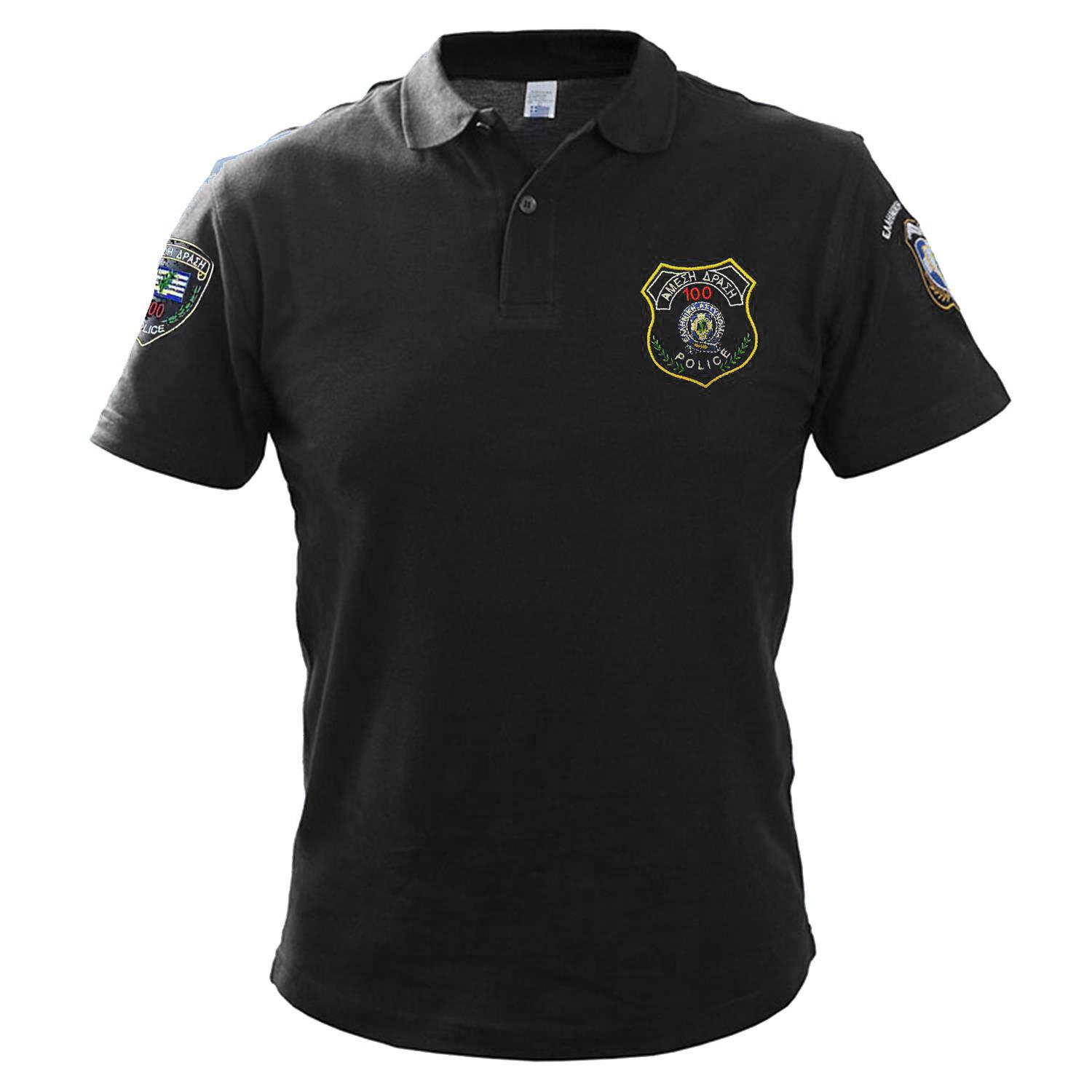 Μπλουζάκι πόλο βαμβακερό 100% με γιακά και τρία κουμπιά κοντό μανίκι με κέντημα Άμεση Δράση