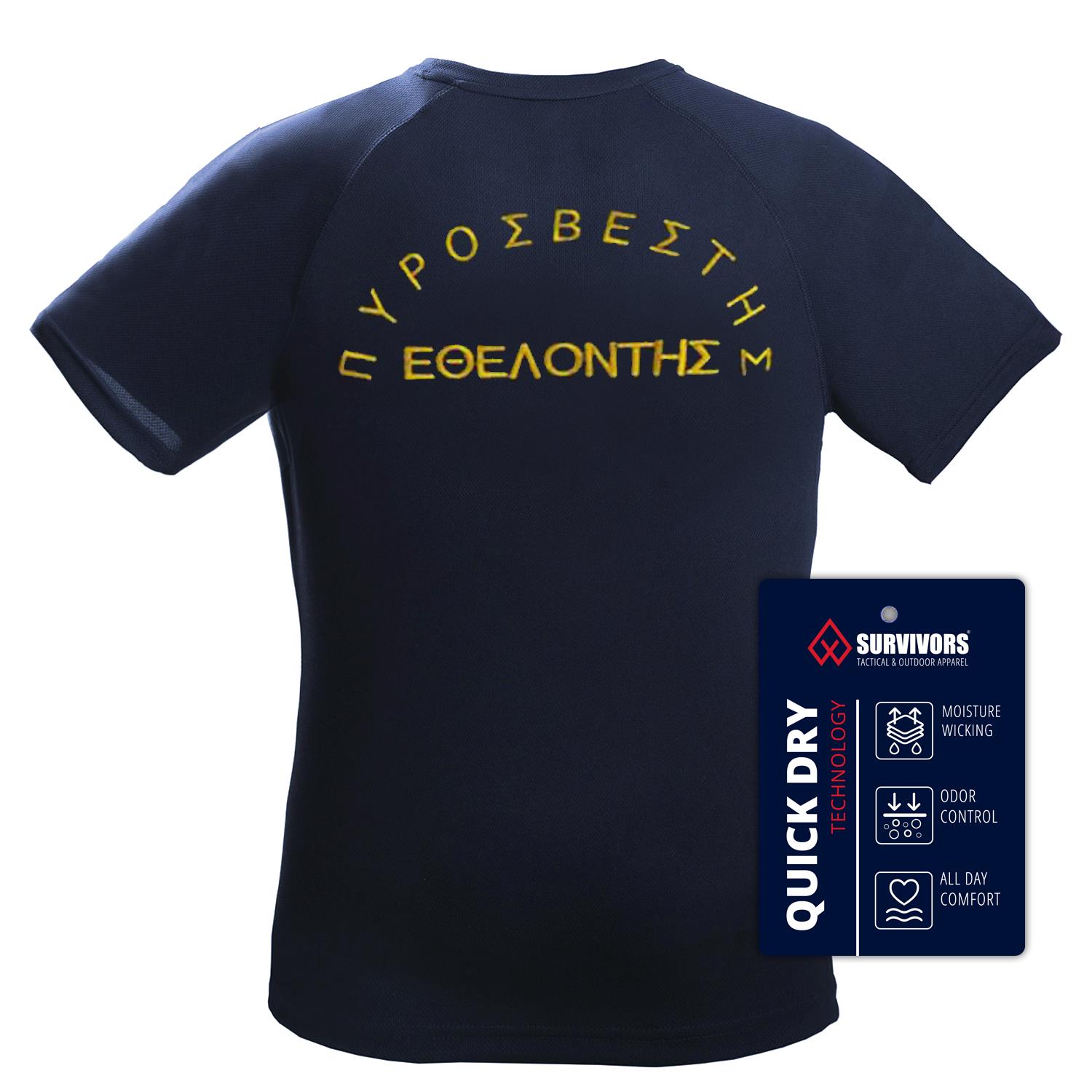 Μπλουζάκι T-Shirt Quick Dry Survivors ΕΘΕΛΟΝΤΗΣ ΠΥΡΟΣΒΕΣΤΗΣ. Έχει κεντήματα στο στήθος, στην πλάτη και στα μανίκια.