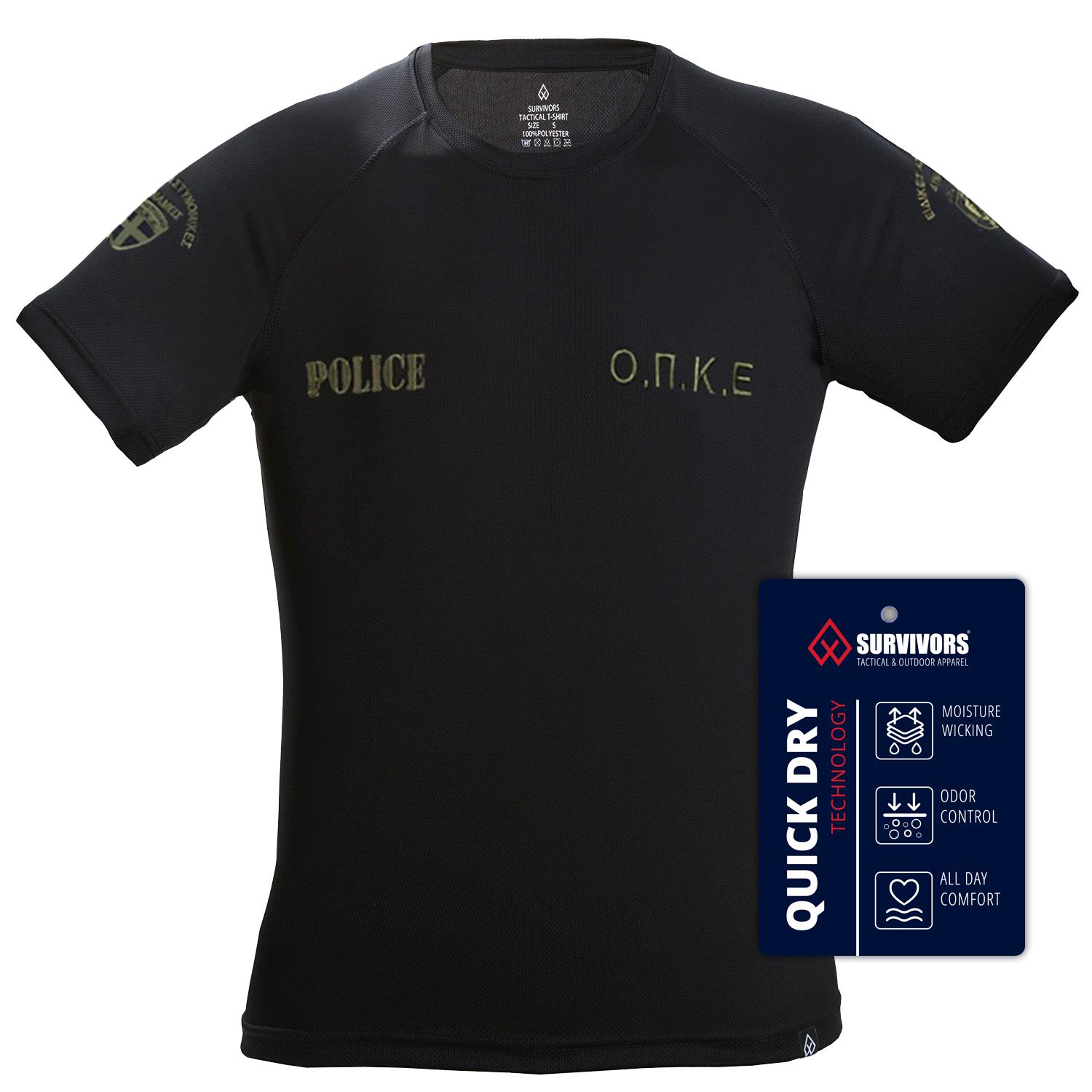 Μπλουζάκι T-Shirt Quick Dry Survivors ΟΠΚΕ. Έχει κεντήματα στο στήθος, στην πλάτη και στα μανίκια.