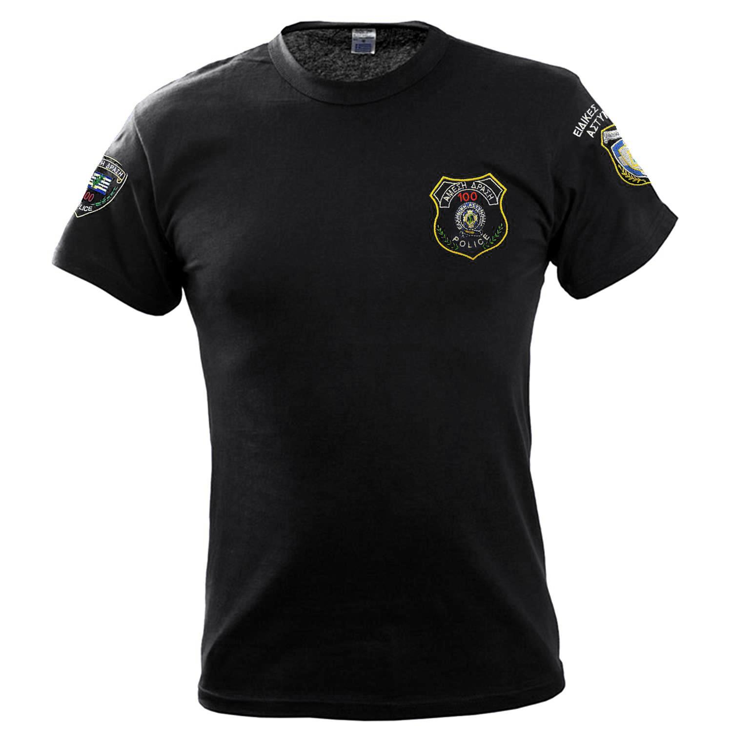 Μπλουζάκι μακό βαμβακερό 100% με κέντημα Άμεση Δράση μπρος πίσω και στα μανίκια.