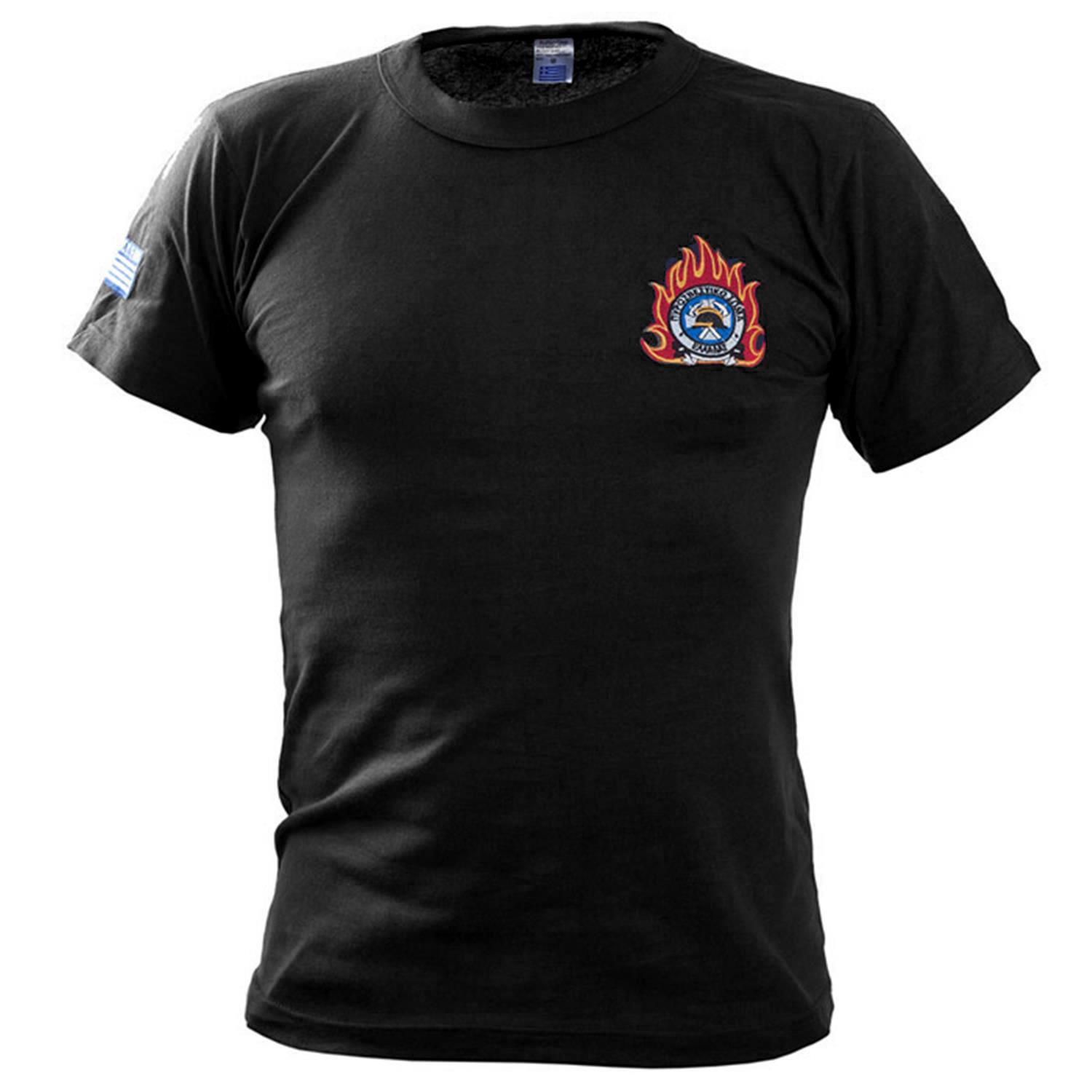 Μπλουζάκι μακό βαμβακερό 100% με κέντημα Πυροσβεστικής μπρος πίσω και στα μανίκια