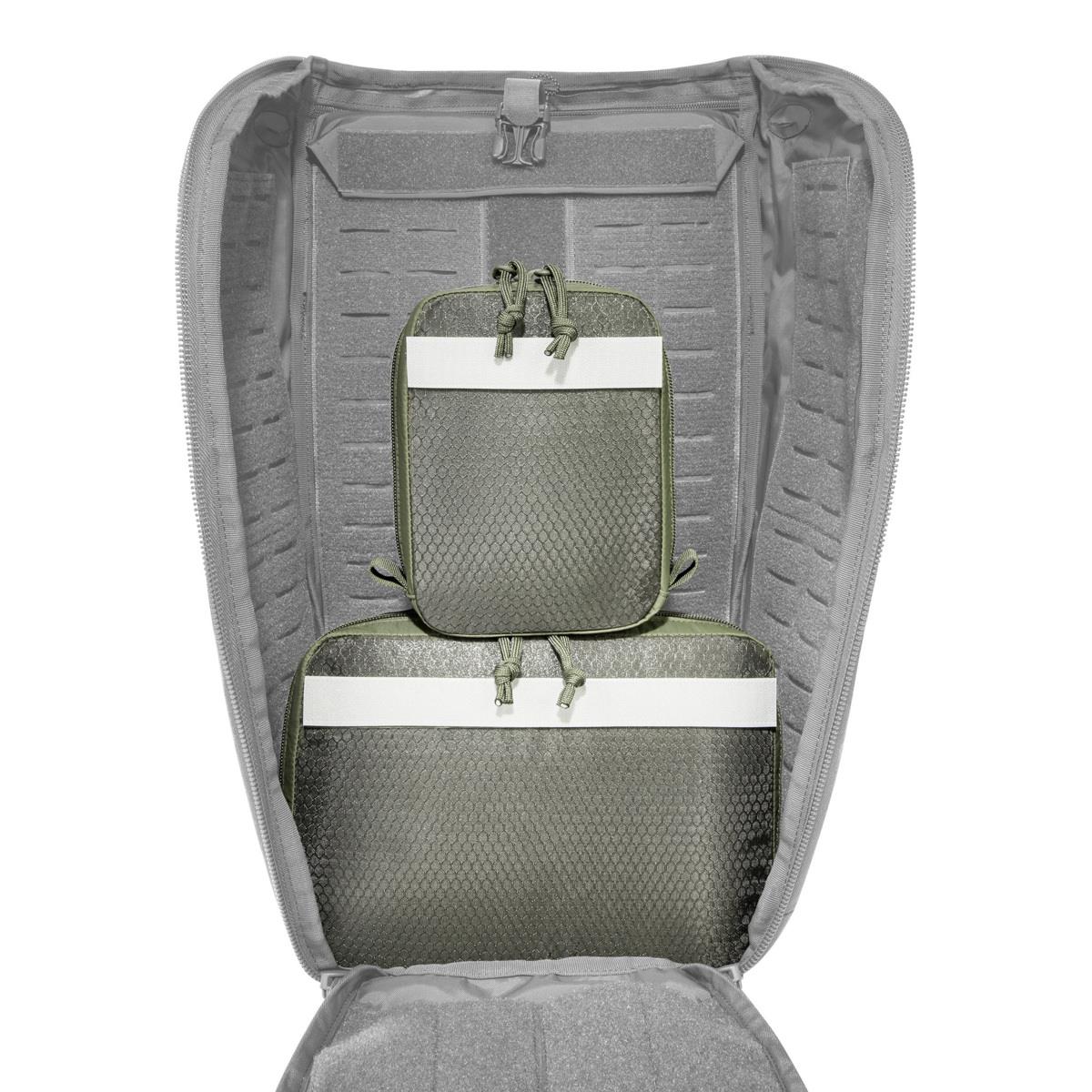 The pouches have a transparent lid made of mesh material and hook-and-loop strips on the back. They can be easily mounted on hook-and-loop surfaces or in the modular TT backpacks.