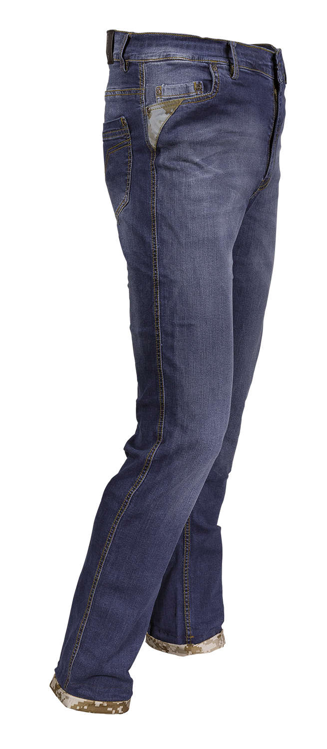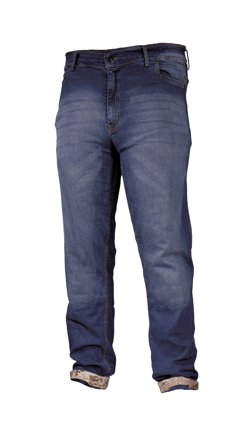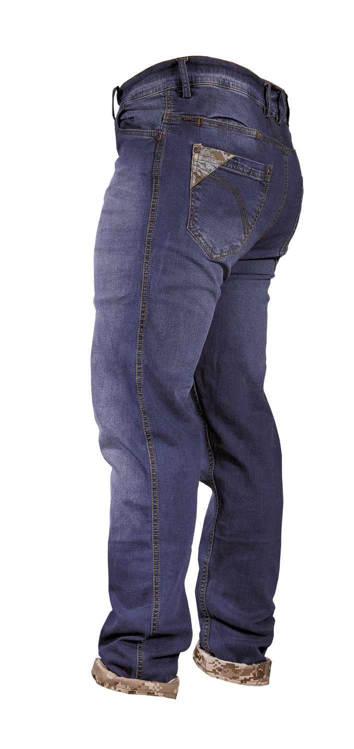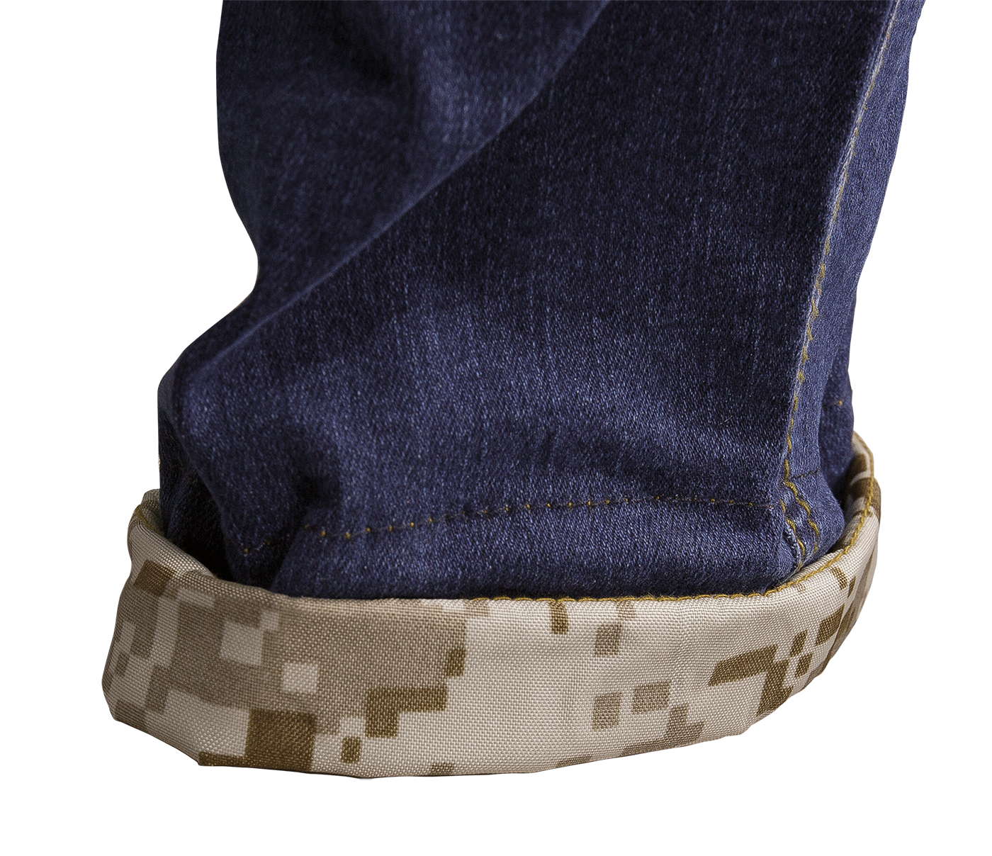 The jeans has a double waterproof material in AOR1 that serves two functions: On the one hand, it has an aesthetic function and on the other, the jean incorporates 8 cm of this material sewn as an inner lining that will help to waterproof the bottom of the jean itself.