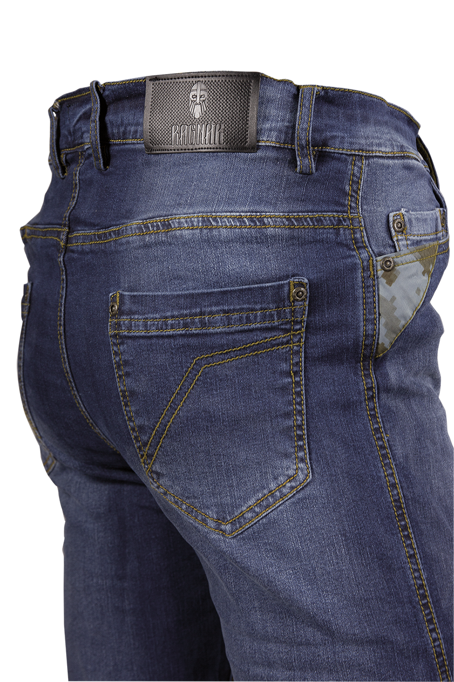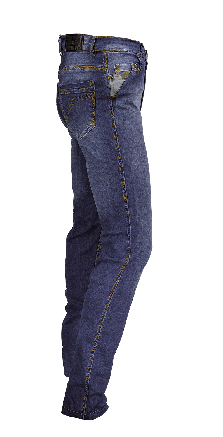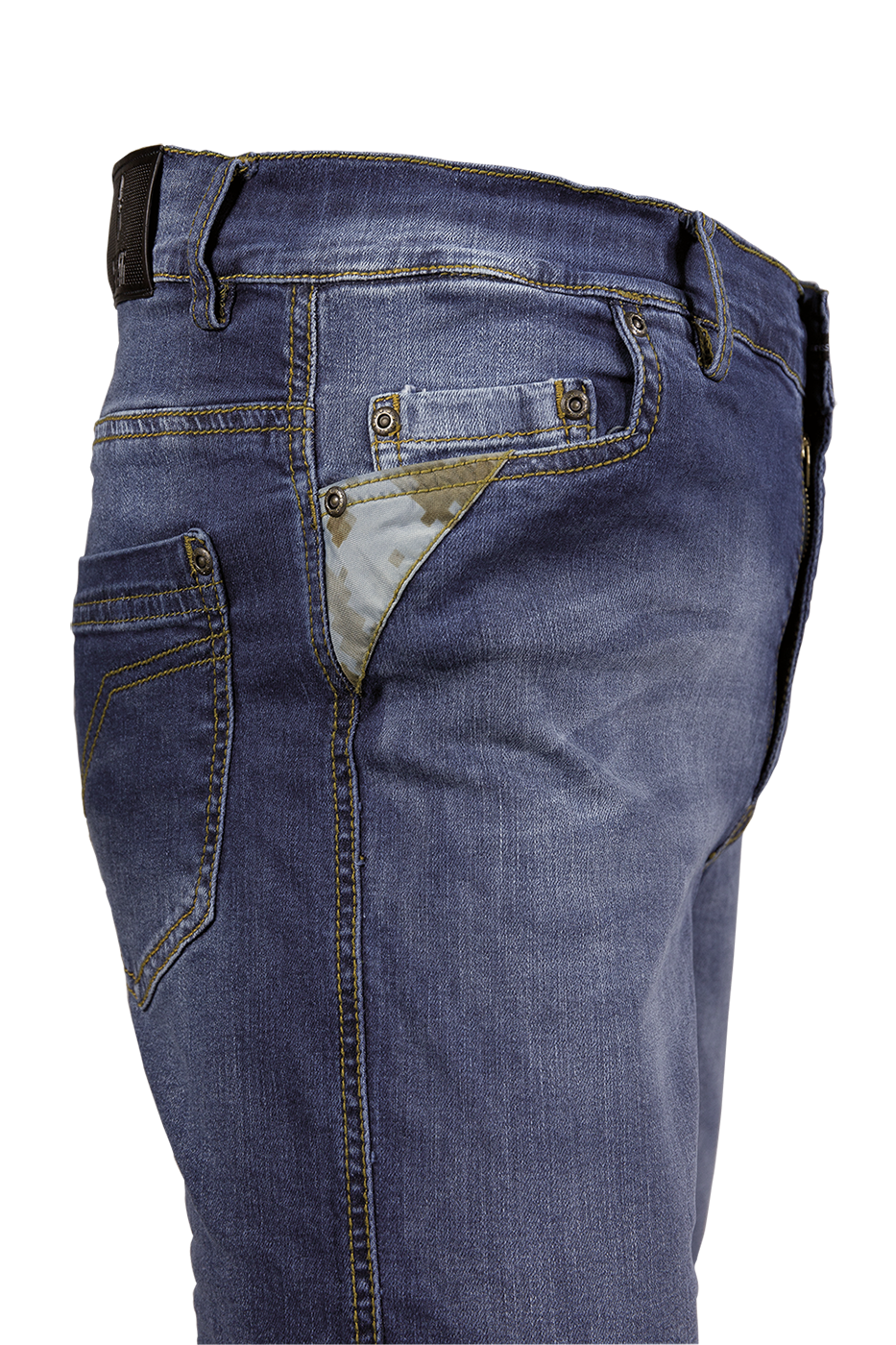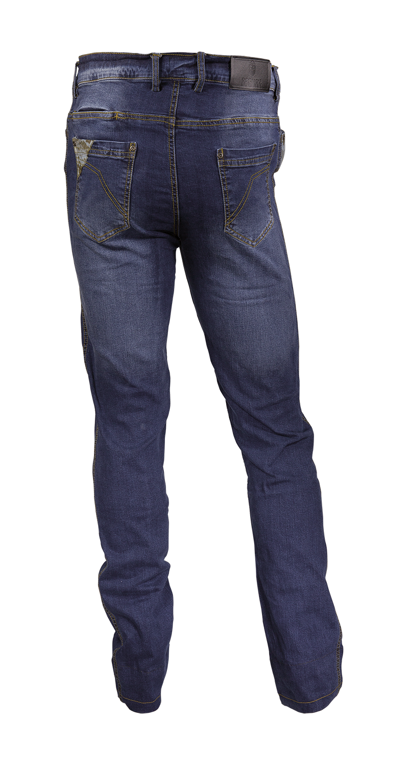 The jeans has a double waterproof material in AOR1 that serves two functions: On the one hand, it has an aesthetic function and on the other, the jean incorporates 8 cm of this material sewn as an inner lining that will help to waterproof the bottom of the jean itself.