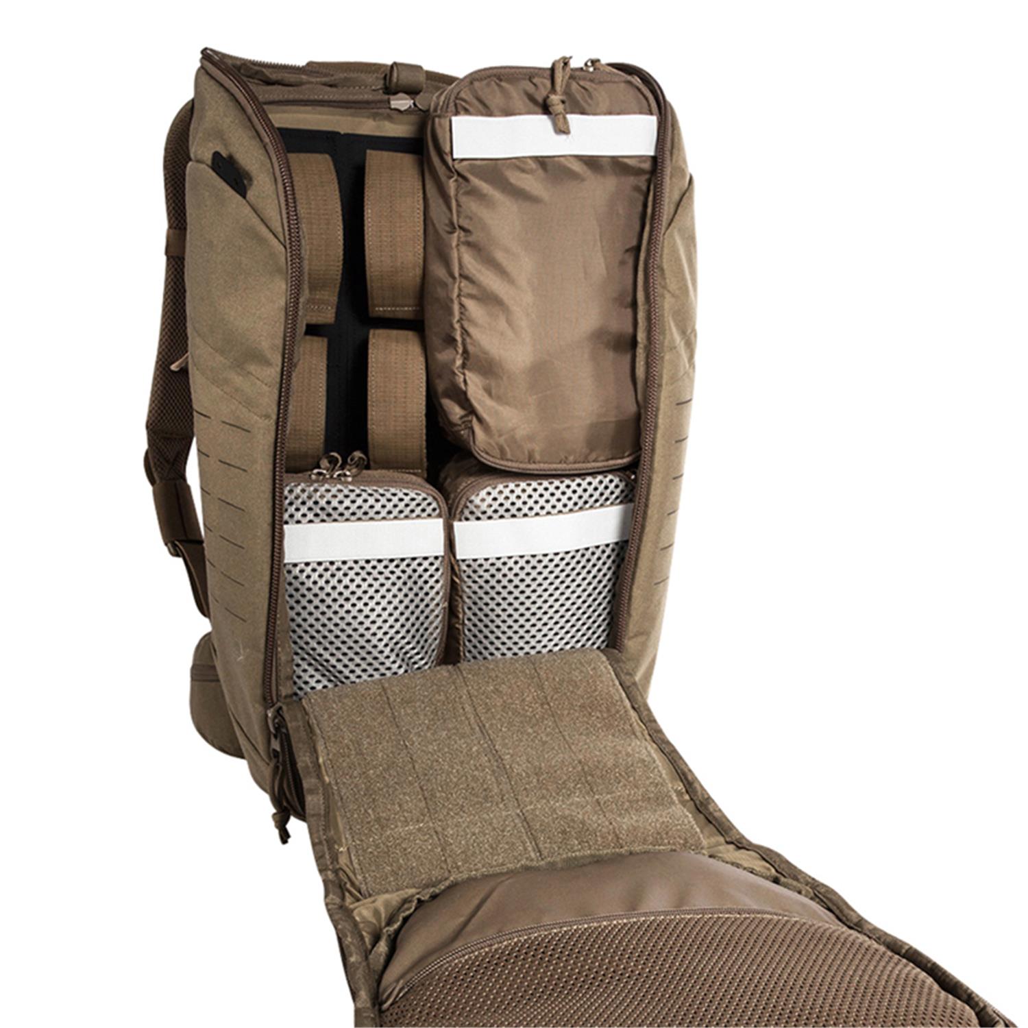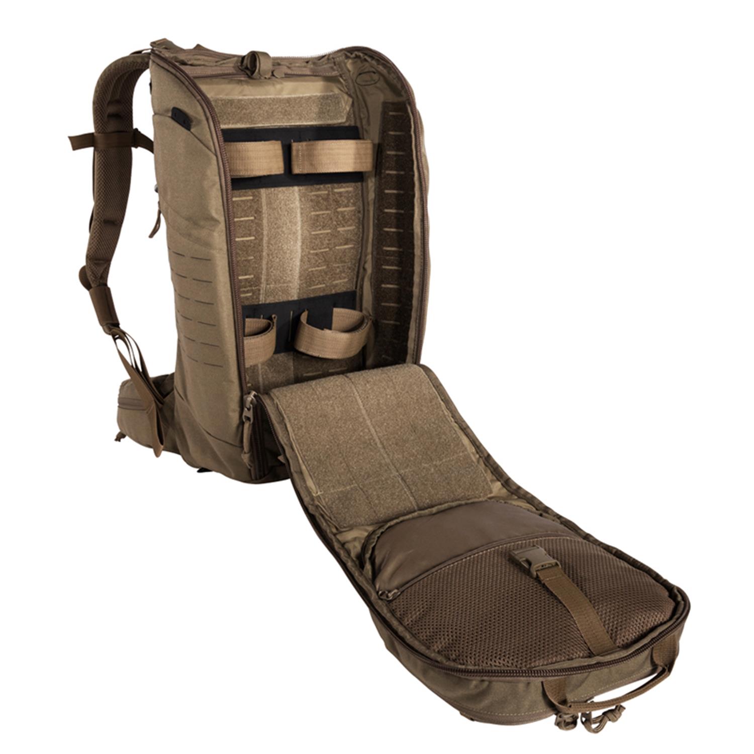 Σακίδιο μάχης universal αρθρωτής σχεδίασης. Έχει τσέπη μπροστά και τσέπη στο καπάκι με organizer . Laser-cut Molle στο πλάι και μπροστά Το μπροστινό διαμέρισμα του σακιδίου ανοίγει εντελώς για πλήρη πρόσβαση στο εσωτερικό όπου υπάρχουν 3 αποσπώμενες θήκες με Velcro θηκη για όπλο και έξοδος κεραίας καθώς και laser – cut Molle Velcro για να μπουν extra θήκες. Ενισχυμένη αναπαυτική πλάτη με ζώνη που αφαιρείται.