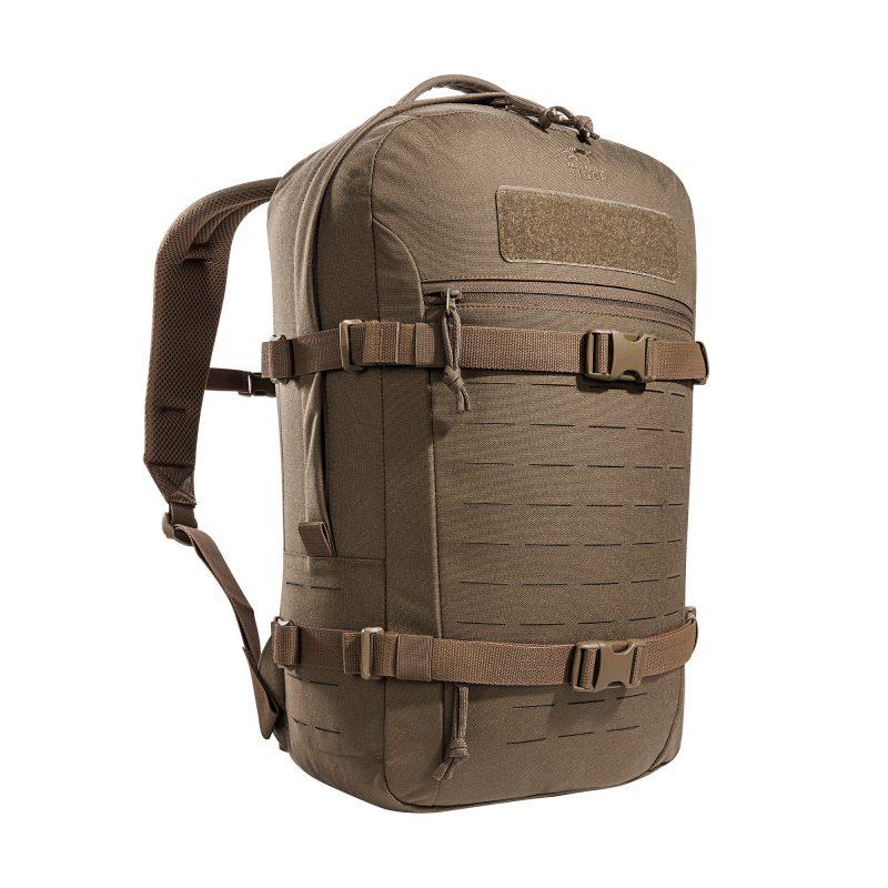 Modular daypack with 23 liters of volume. The backside of the main compartment of the daypack is lined with MOLLE hook panels for attaching compatible loop pouches. It is also designed to hold a 15.4″ laptop. The flat zipper front pocket is great for documents while the laser-cut MOLLE on the front and sides allow you to add gear to suit your needs.