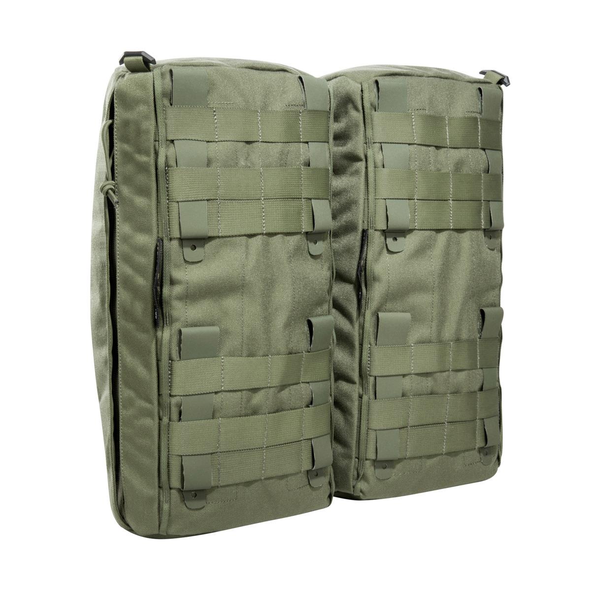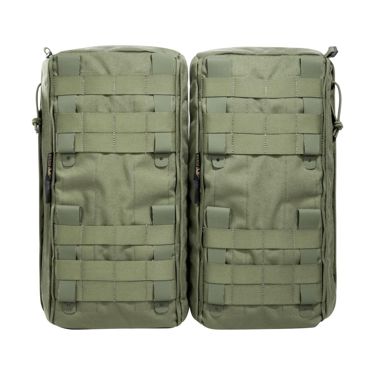 Simple bellows bag set for use on the backpack. The bags have 12 liters of volume each and feature a holder for a water bottle. Access is from the right or left.