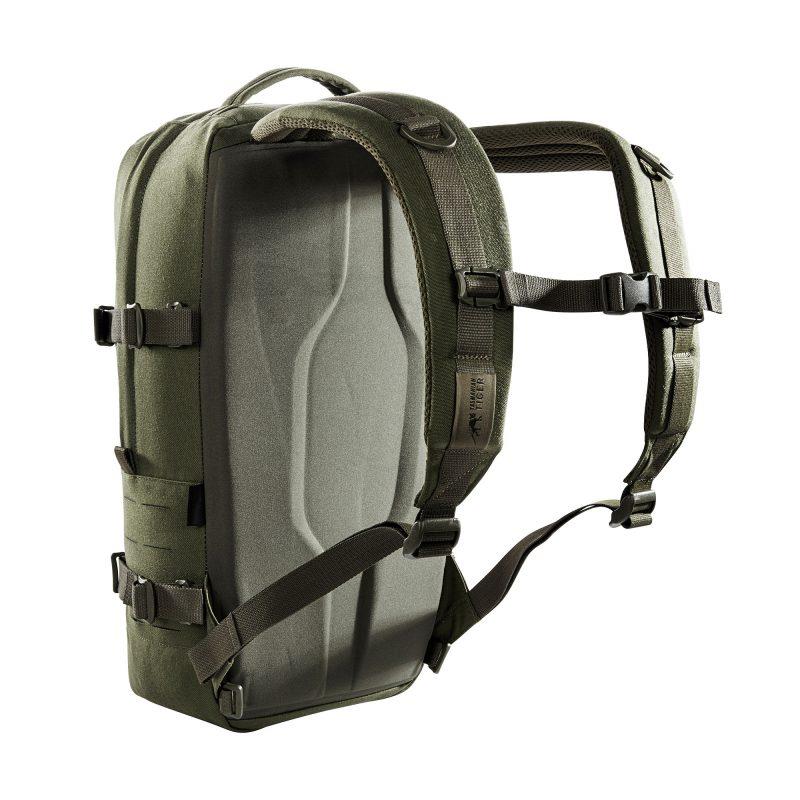 Modular daypack with 18 liters of volume. The backside of the main compartment is lined with MOLLE hook panels for attaching compatible loop pouches. The flat zipper front pocket is great for documents while the laser-cut MOLLE on the front and sides allow you to add gear to suit your needs.