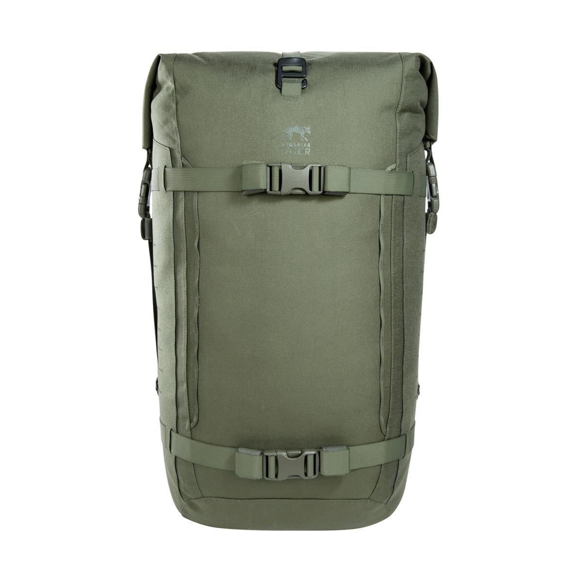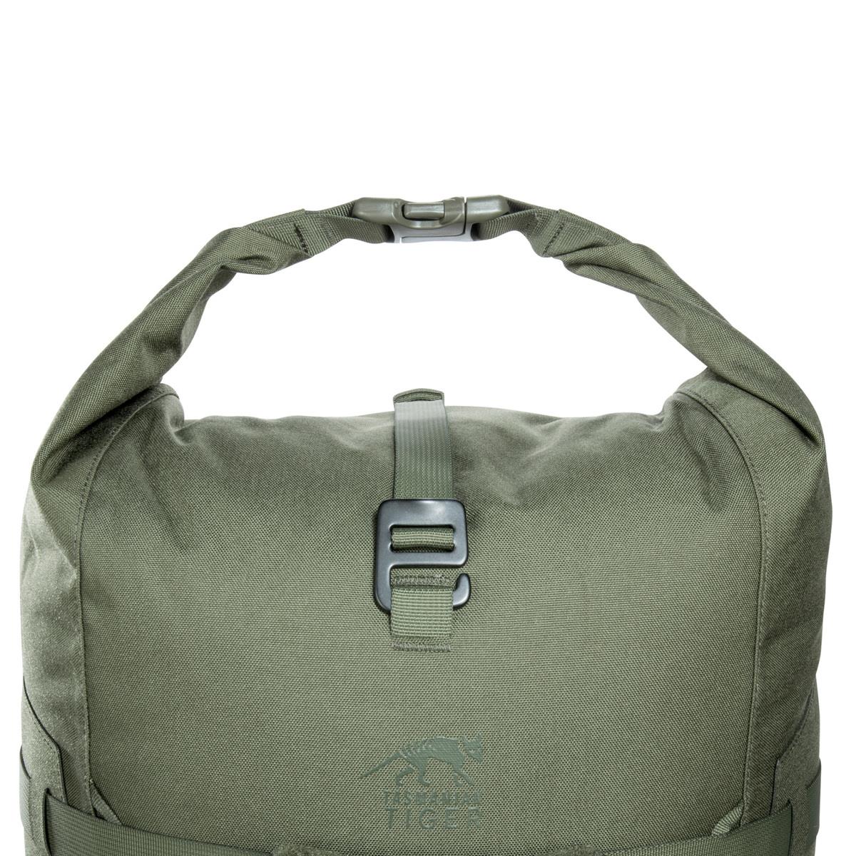 The TT Sentinel 35 WP is suitable for light, possibly bulky equipment. It has a roll-top closure and can be compressed by completely circumferential straps if necessary. MOLLE in laser-cut design on the sides allows for customization. A webbing system on the front is used to hold additional gear.